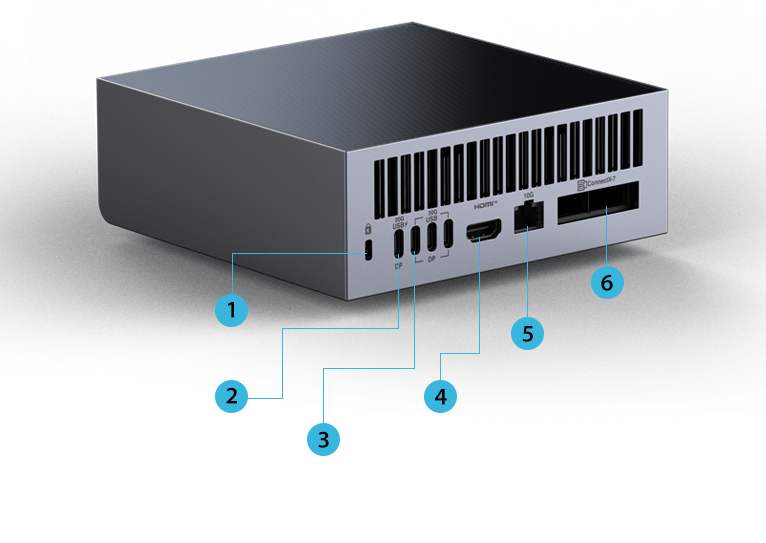 - 3 x USB 3.2 Gen 2x2 Type-C, 20Gbps,alternate mode (DisplayPort 2.1)