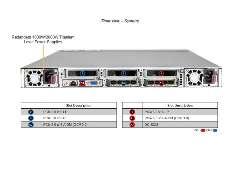 - Ranuras PCI-E: OCP 3.0 Slot (2), PCI-E 5.0 x16 (2), PCI-E 5.0 x8 (1)