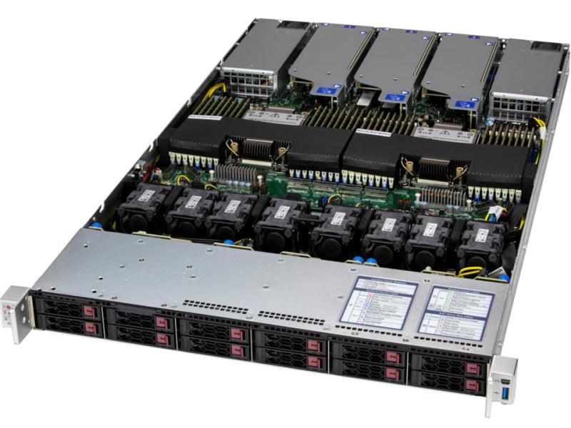 1U Chassis Redundant Power Supply 8x2.5" H/Sw Drive Bays Intel SOC Chipset DP Socket 4710 (Up to 8192GB RAM) 8xNVMe PCI-E 5.0x4,2xM.2 PCI-E 5.0x2, 1xDed.IPMI RJ45 Onboard, 2 x Intel Xeon 6517P 3.2GHz, 128GB DDR5/6400MT/s Installed, 1 x Ethernet Controller Supermicro 2x25GbE SFP28, 1 x Ethernet Controller Supermicro 2x10GbE RJ45, 2 x NVMe 960GB 2.5" PM9A3