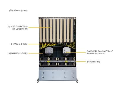 Full Tower/4U Chassis Redundant Power Supply 8x2.5" H/Sw Drive Bays Intel C741 Chipset DP Socket 4677 DP (Up to 8192GB RAM) 8xSATA 6Gb,2xM.2 PCI-E 4.0x4,8xNVMe PCI-E 4.0x4, 2x10GbE RJ45,1xDed.IPMI RJ45 Onboard, 2 x Intel Xeon Gold 5418Y 2.0GHz, 256GB DDR5/5600MT/s Installed, 2 x NVIDIA PNY Quadro RTX4000-ADA GPU, 2 x NVMe 3.84TB 2.5" Kioxia
