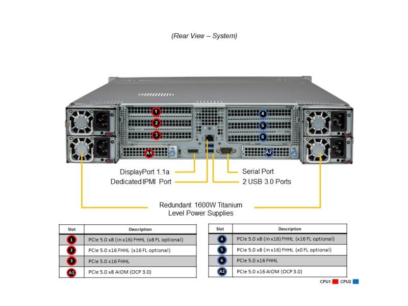 - PCI_E^ Слотове: OCP 3.0 Slot (2), PCI-E 5.0 x16 (3), PCI-E 5.0 x8 (3)